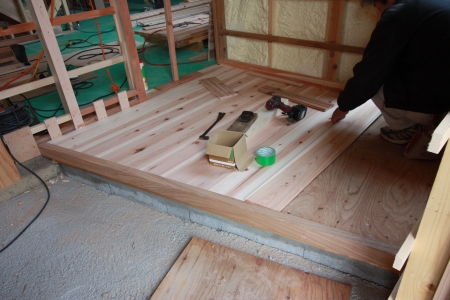 ホーム > リフォーム リフォーム工事 玄関のフローリングの施工が進行しております。今回は上り框にタモの無垢材を使用しました。 玄関の上り框は部材として、物をぶつけたり、傷つけやすいため、硬い材質の広葉樹が適しています。欅(ケヤキ)樺桜(カバザクラ)、楡(ニレ)、タモ、チーク等さまざまな材種がありますが、今回は杉の無垢材とのバランスもよく洋風にも和風にも合うのでタモを使用する事にしました。 無垢のフローリングは素足ですごされても合板の塗装品とくらべると足元が冷えない上に、夏場はさらっとしたやさしい肌ざわりなのでおすすめです。 共有:TwitterFacebookいいね:いいね 読み込み中… カテゴリー:リフォーム Fujiyasu 関連投稿 I邸 / キッチン / リフォーム / 竣工写真 / 家具 2世帯の家リフォーム リフォーム 増改築工事 リフォーム 外壁改修工事着工 リフォーム リフォーム現場 Y邸 / 耐震・断熱改修 / リフォーム / オープンハウス あっという間の2日間でした☆ コメントを残す コメントをキャンセルメールアドレスが公開されることはありません。 * が付いている欄は必須項目ですコメント 名前 * メール * サイト 次回のコメントで使用するためブラウザーに自分の名前、メールアドレス、サイトを保存する。 コメントするΔ 前の投稿 シロアリ被害修繕完了 次の投稿 リノベーション