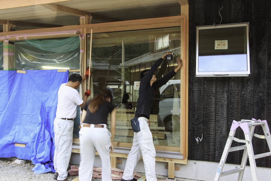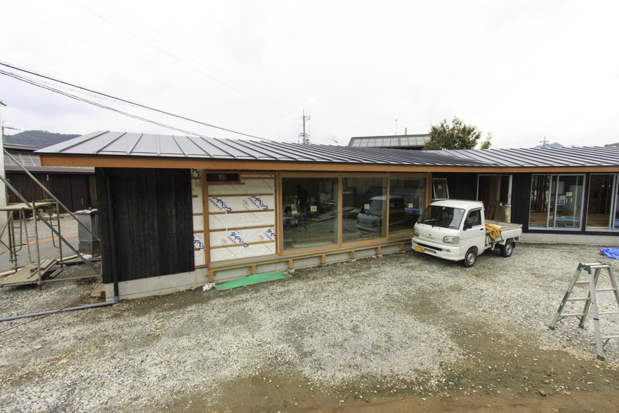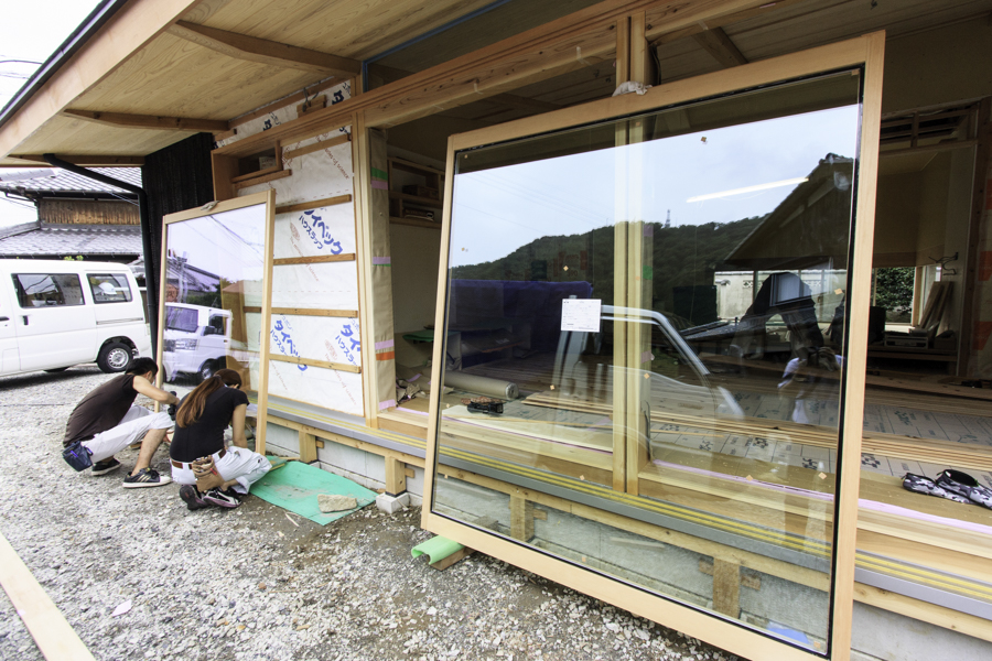 ホーム > 新築工事 / 長期優良住宅 / 古庭に佇む家 / 平屋住宅 / 木製建具 -現場近況- -古庭に佇む家- 木製建具の取付の様子です。 ▽リビングの窓は製作品の木製建具で・・・ コストは少し高くなりますが、当社のオススメです。 “両引き分け戸”という形状で、建具の走る溝を一本にし、金物やピンチブロックで気密性が損なわれないように工夫しています。 また木は金属に比べ断熱性能が非常に優れています。 ▽冬の日射エネルギーを活用する為、遮熱タイプではなく日射を有効に取り入れるタイプのLow-Eガラスを採用しています。 夏には深い軒の出で日射を遮蔽します。 ▽リビング内部・・・仕上げ工事が順調に進行しています。 共有:TwitterFacebookいいね:いいね 読み込み中… カテゴリー:新築工事長期優良住宅古庭に佇む家平屋住宅木製建具 タグ:木製建具 Norikazu 関連投稿 Y邸 / 耐震・断熱改修 / リフォーム / 木製建具 カモイの加工 A邸 / リフォーム 木づくり 新築工事 / 長期優良住宅 / 木製建具 長期優良住宅 -そよ風の家- 新築工事 鳥居完成 新築工事 / 長期優良住宅 認定長期優良住宅 コメントを残す コメントをキャンセルメールアドレスが公開されることはありません。 * が付いている欄は必須項目ですコメント 名前 * メール * サイト 次回のコメントで使用するためブラウザーに自分の名前、メールアドレス、サイトを保存する。 コメントするΔ 前の投稿 -現場近況- 次の投稿 -造り付け浴室-