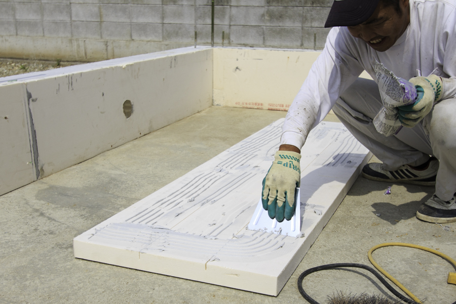 ▽現場のほうでは基礎の土間部分にスカート断熱を施工しています。