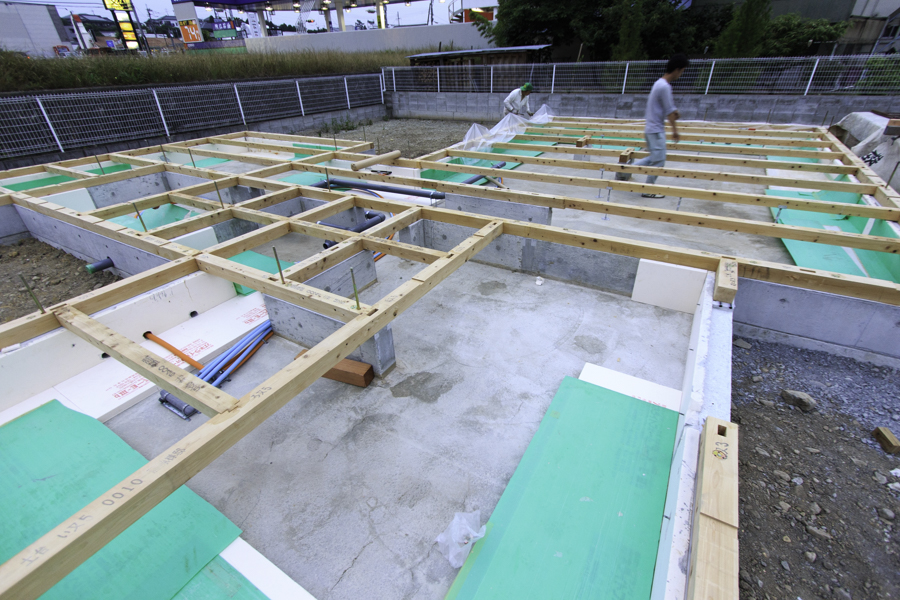 ▽土台が敷設されました、通常このまま床下地を施工するのですが、