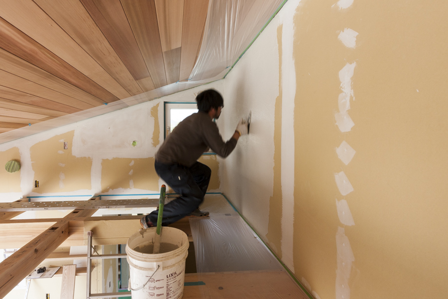 ホーム > 新築工事 / 長期優良住宅 / 麓のアソブイエ / ゼロエネ住宅 左官屋 ▽左官仕上施行中。主な仕上げは“ハイブリッド珪藻土”を採用しました。 ▽リビングのアクセントウォールには石英岩の割肌の物を眠り目地で張っています。 ▽トイレの床タイル 美しく仕上げる為、詳細な割付図面に基づいて張り付けていきます。 ▽玄関土間はシビ目地を入れた黒モルタルで仕上げました。 共有:TwitterFacebookいいね:いいね 読み込み中… カテゴリー:新築工事長期優良住宅麓のアソブイエゼロエネ住宅 タグ:珪藻土左官工事塗壁 Norikazu 関連投稿 新築工事 / 長期優良住宅 深基礎ベースコンクリート打設 長期優良住宅 / 中区の家 -中区の家-御上棟 新築工事 薬局新築工事 新築工事 / 長期優良住宅 -基礎工事- 新築工事 / 長期優良住宅 10月1日 基礎完成 コメントを残す コメントをキャンセルメールアドレスが公開されることはありません。 * が付いている欄は必須項目ですコメント 名前 * メール * サイト 次回のコメントで使用するためブラウザーに自分の名前、メールアドレス、サイトを保存する。 コメントするΔ 前の投稿 オリジナルキッチン 次の投稿 -ゼロエネハウス-