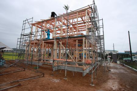 ホーム > 新築工事 / 長期優良住宅 10月7日 祝☆ 御上棟 明日は台風18号が直撃するかもしれません。 何事もないように祈りつつ、どんどん組み立てて行きます。 骨組がだいぶ出来上がってきました。 台風が近づいてきて、雨脚もだんだんと強まってきましたが、なんとか御幣もあがり無事に上棟することができました。 共有:TwitterFacebookいいね:いいね 読み込み中… カテゴリー:新築工事長期優良住宅 Fujiyasu 関連投稿 新築工事 新築現場 新築工事 鳥居製作中 新築工事 薬局新築工事 新築工事 / 長期優良住宅 / 竣工写真 / 内と外をつなぐ家 / 木製建具 内と外をつなぐ家-洗面・脱衣場- 新築工事 ハウスプラス中間検査 コメントを残す コメントをキャンセルメールアドレスが公開されることはありません。 * が付いている欄は必須項目ですコメント 名前 * メール * サイト 次回のコメントで使用するためブラウザーに自分の名前、メールアドレス、サイトを保存する。 コメントするΔ 前の投稿 10月6日 先行足場の組立完了 次の投稿 屋根下地工事